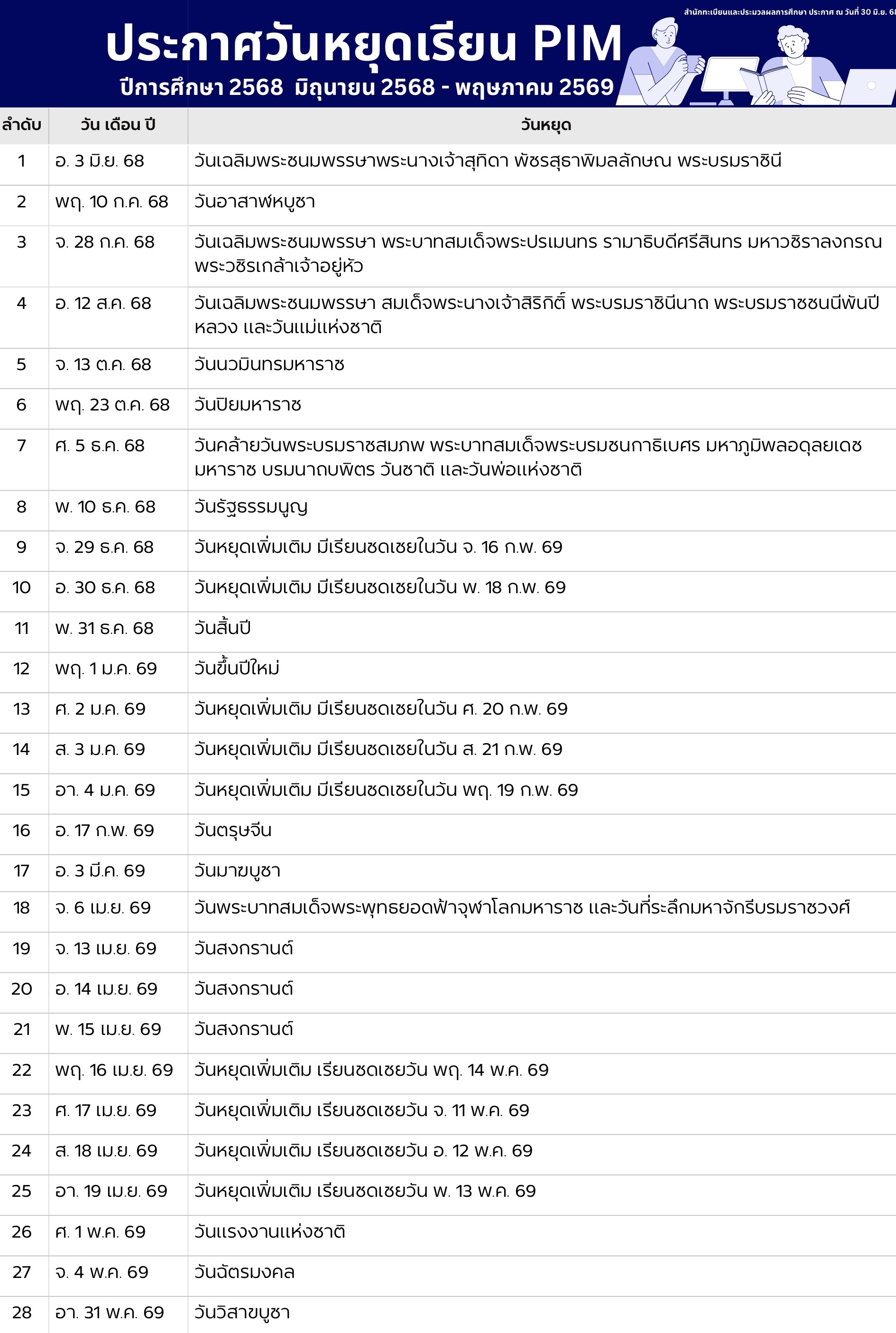 ปฏิทินการศึกษา ระดับปริญญาตรี